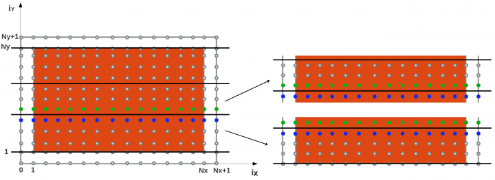 Parallelize the code by using domain decomposition technique: let’s divide the domain in slices along the y coordinate.
